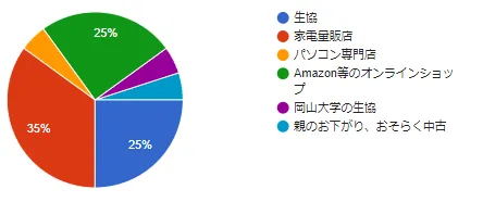 一番多かったのが家電量販店で、生協やオンラインショップを利用した人はそれぞれ4分の1を占めていました。パソコン専門店や中古店で購入した人はそれぞれ1人しかいませんでした。理由を聞いてみましょう。