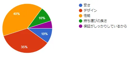 パソコンを購入するにおいて何を一番重視したかを聞いたところ、性能orデザインを重視した人が多くの割合を占めていました。また、安さを重視している人は意外と少なかったです。