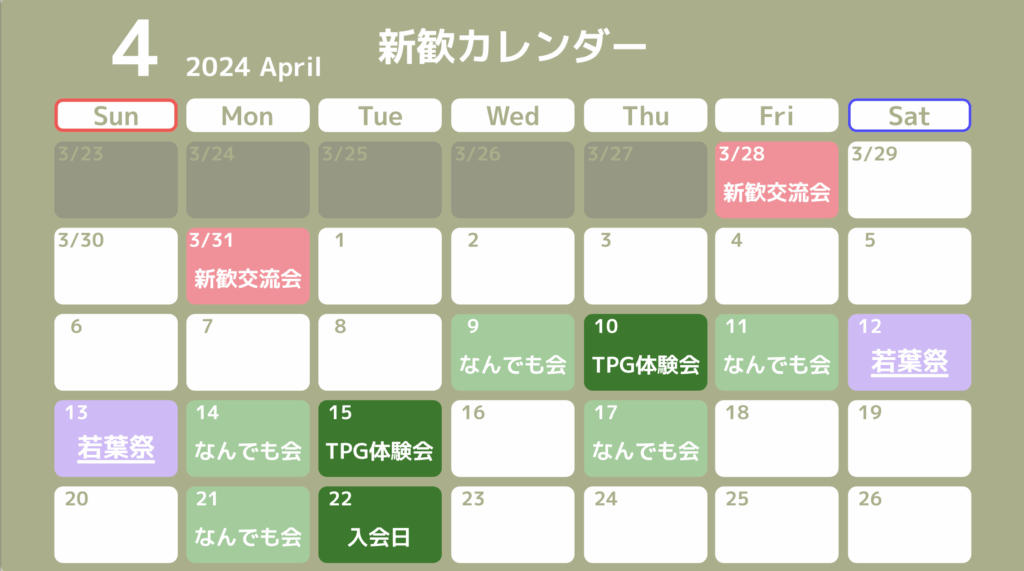 新歓ブログリレー5巡目ということで、今回はTPGの新歓情報を全て公開しちゃいます!