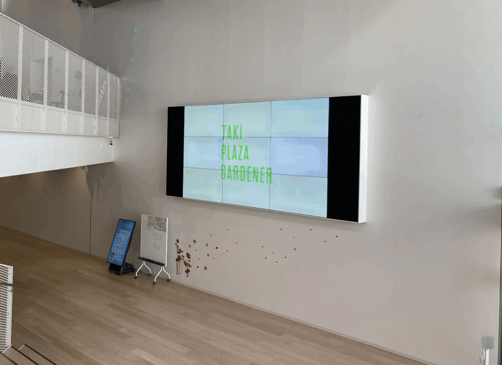 また、特に新入生の皆さんもこれからよく訪れる機会があるTaki Plaza B2Fに降りるときの、大階段下の9面マルチモニターで放送する映像や、階段下の学生掲示板に掲示するポスターの募集も行っています。