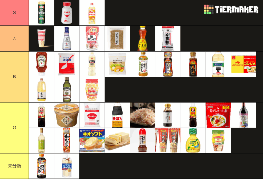 TPG制作班の佐野です。大学に入って一人暮らしを始める人は、料理をどれだけするかに関わらずとりあえず調味料を揃えるかと思います。しかし、一人暮らしに使う家や冷蔵庫は基本的に超狭いので、変なものを買うとそれだけで命取りです。この記事では、あらゆる調味料を複数の観点から評価しTier表とすることで25Bの新生活をサポートします。